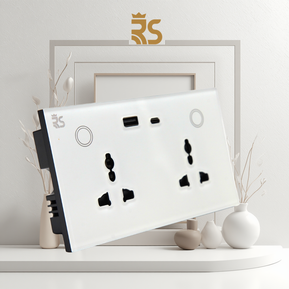 الفيش الذكي المزدوج من REINE SMART متعدد المهام مزود بمنفذي USB و TYPE-C لشحن وتشغيل الأجهزة المختلفة بكل سهولة. يدعم التحكم عن بعد من خلال تطبيق الهاتف أو الأوامر الصوتية عبر ALEXA، مما يوفر راحة وأماناً أكبر داخل المنزل.