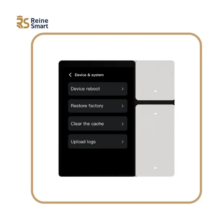مع Reine Smart شاشة تحكم ذكية بحجم 4 إنش ميني تمنحك تجربة تحكم متكاملة داخل الغرفة تتيح لك إدارة الإضاءة والستائر بسهولة، مع مفاتيح إضاءة إضافية لمرونة أكبر كما تدعم خاصية التحكم (IR) لتشغيل الأجهزة المختلفة مثل المكيفات والتلفزيون من مكان واحد.