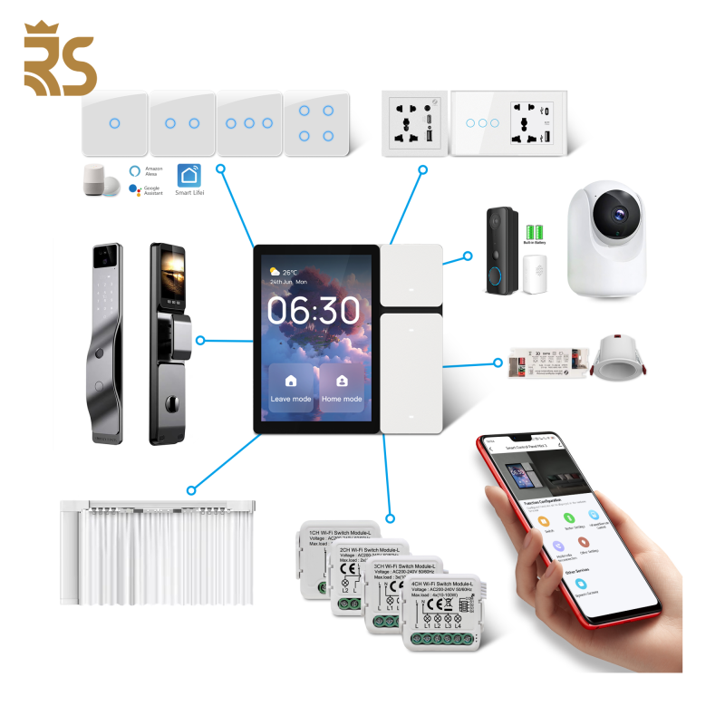 REINE SMART شاشة تحكم ذكية بحجم 4 إنش تتيح تجربة تحكم متكاملة داخل الغرفة، تميل إلى إدارة الإضاءة والستائر بسهولة، وتدعم إعدادات إضاءة إضافية لمرونة أكبر، كما تضم نظام التحكم (IR) لتشغيل الأجهزة المنزلية مثل التكييفات والتلفزيون.
