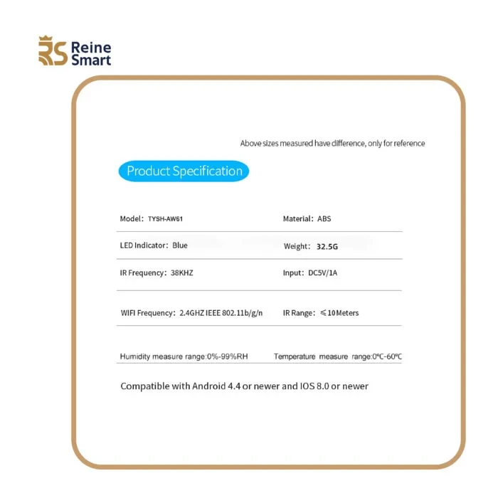 وحدة التحكم الذكية مع Reine Smart تتيح لك إدارة الأجهزة المنزلية مثل المكيفات والتلفزيون من خلال الهاتف المحمول بكل سهولة، بدلاً من استخدام وحدات التحكم التقليدية، صممت لتمنحك تجربة أكثر راحة وتحكمًا متكاملًا في أجهزتك اليومية.
